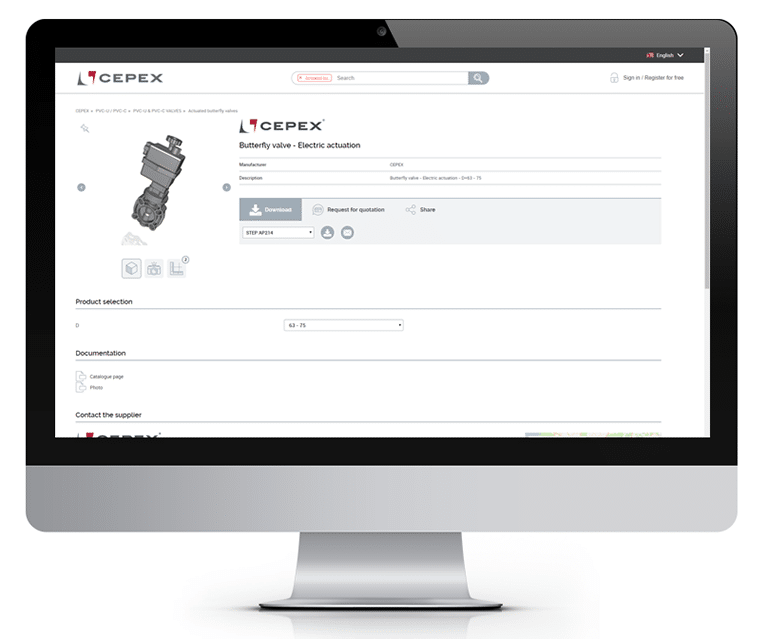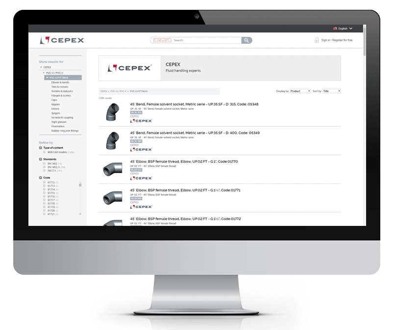 Design professionals interested in your 2D/3D CAD models and technical data are then redirected to a web page containing your logo and featuring a graphical user interface similar to TraceParts site.
